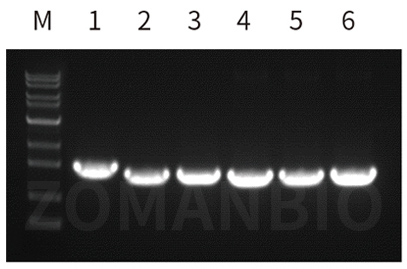 M:DL15000 plus DNA marker 1:A公司 2:B公司 3:C公司 4:D公司 5:E公司 6:F5 Mix | M:DL15000 plus DNA marker 1:500ng 2:50ng 3:5ng 4:0.5ng 5:50pg 6:5pg |