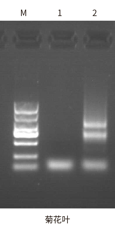 注:M表示DL2000 Maker,1表示MicroRNA提取試劑盒ZP438提取,2表示Trizol提取
