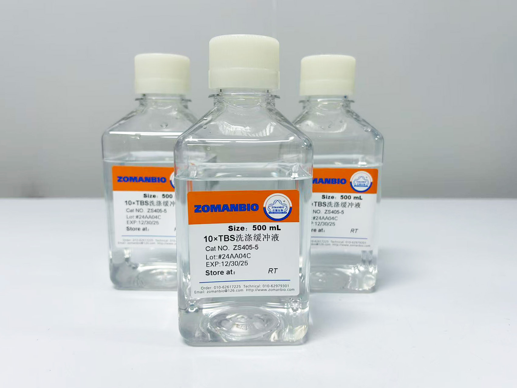 TBS緩沖液是生物學中常使用的等滲Tris 緩沖鹽溶液,pH=7.6±0.1,主要用于免疫組化和原位雜交,酶聯免疫等實驗中,清洗免疫印跡實驗中非特異性結合的抗體等。TBS由Tris-HCl構成穩定的pH緩沖體系,由NaCl提供等滲條件。