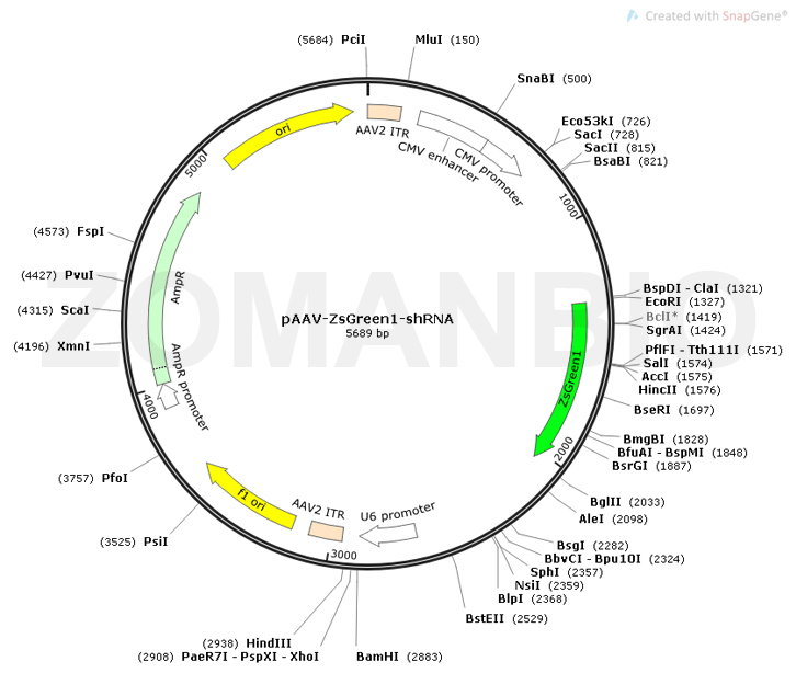 pAAV-ZsGreen1-shRNA是一個腺相關病毒干擾質(zhì)粒。